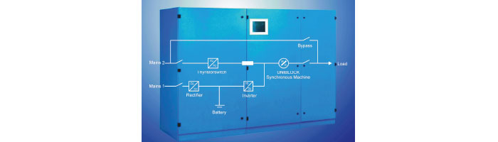 Continuous and clean energy source dynamic uninterrupted The most important feature of power supplies is that they have a unique synchronous machine that produces natural sine waves independent of the network. UNIBLOCK-T+ with PowerBrdige is a model with a Kinetic Energy Storage structure. This product, which has a solution capacity in MV and LV conditions, is produced between 625kVA-2500kVA as a single without paralleling. When you prefer a Dynamic UPS with Kinetic Energy Storage; needs such as compensation panels and air conditioning will be eliminated. A much more efficient, high-quality, safe and long-lasting solution will be obtained with a single system.