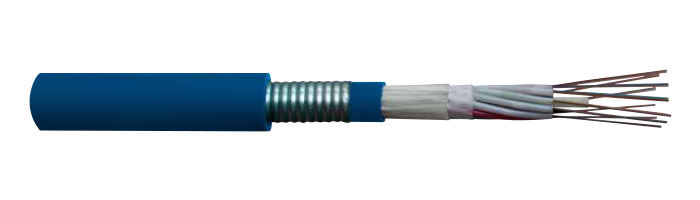 4 adet single/multi mode optik fibere kadar ve fiberlerle birlikte su geçirmez malzemeyi de içeren termoplastik tüp ve yeterli sayıda elemanın (tüp ya da dolgu) birlikte SZ metodu ile bükülmesi ile kablo çekirdeği oluşur. Kablo özü kuru yapıdadır. Kablo çekirdeği üzerine alev bariyeri bant ya da bantlar ve çevresel olarak güçlendirme amaçlı glass yarn malzemesi sarılır. Güçlendirme elemanları üzerine mavi renkli iç kılıf uygulanır. Kablo çekirdeğini dış etkenlerden korumak için iki tarafı da kopolimer malzeme ile kaplı koruge çelik bant zırh uygulaması yapılır. Zırhın üstüne ise mavi renkli LSOH kılıf uygulanır.